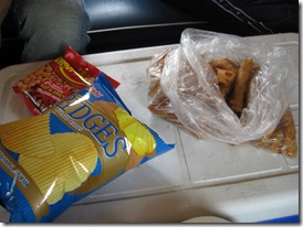 回程的途中,因為已經中午12點了,而我們會延後吃午餐,所以有準備了炸春卷給我們填填肚子,再拿出前一天晚上沒吃完的餅乾,大家開開心心的在車上吃了起來。